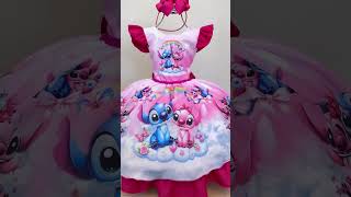 Vestido Infantil Pink Lilo Stitch e Angel Apaixonados Festas